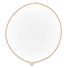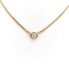 Collier en or jaune 750 millièmes (18 carats). serti d'un diamant sur or blanc. maille anglaise. 1 diamant taille brillant. d'un poids total d'environ: 0.45 ct. dimensions du motif: 1.53 cm X 1.04 cm. longueur chaine: 45 cm. largeur chaine: 0.27 cm. poids total: 14.97 g. poinçon tête d’aigle. excellent état