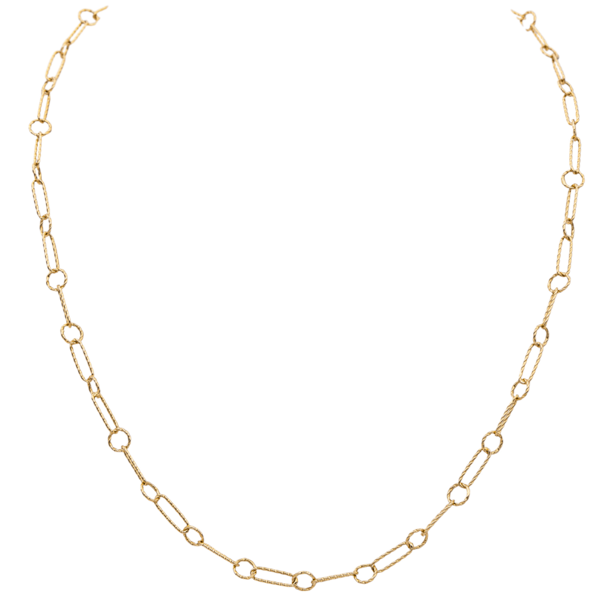 Chaîne sautoir en or jaune 750 millièmes (18 carats). maille filigrane. longueur : 71 cm. largeur : 0.34 cm. poids total : 12.44 g. poinçon tête d’aigle. excellent état