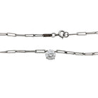 Une Chaine maille figaro allongée en or blanc 750/000 centrée d’un diamant taille brillant de 1.50 carat, couleur E, pureté VVS1. Certificat G.I.A. Longueur : 400 mm Poids : 6,5 grammes