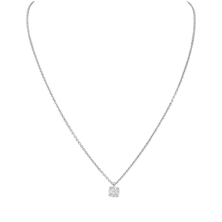 Un collier en or blanc 750/000 composé d'une chaîne maille forçat ronde retenant un diamant taille brillant d'environ 0,50 carats. Qualité estimée du diamant : G/VS. Longueur : 420 mm Poids : 3,7 grammes