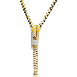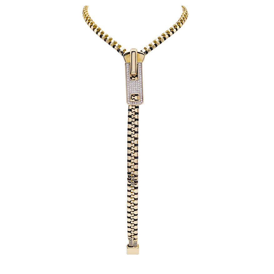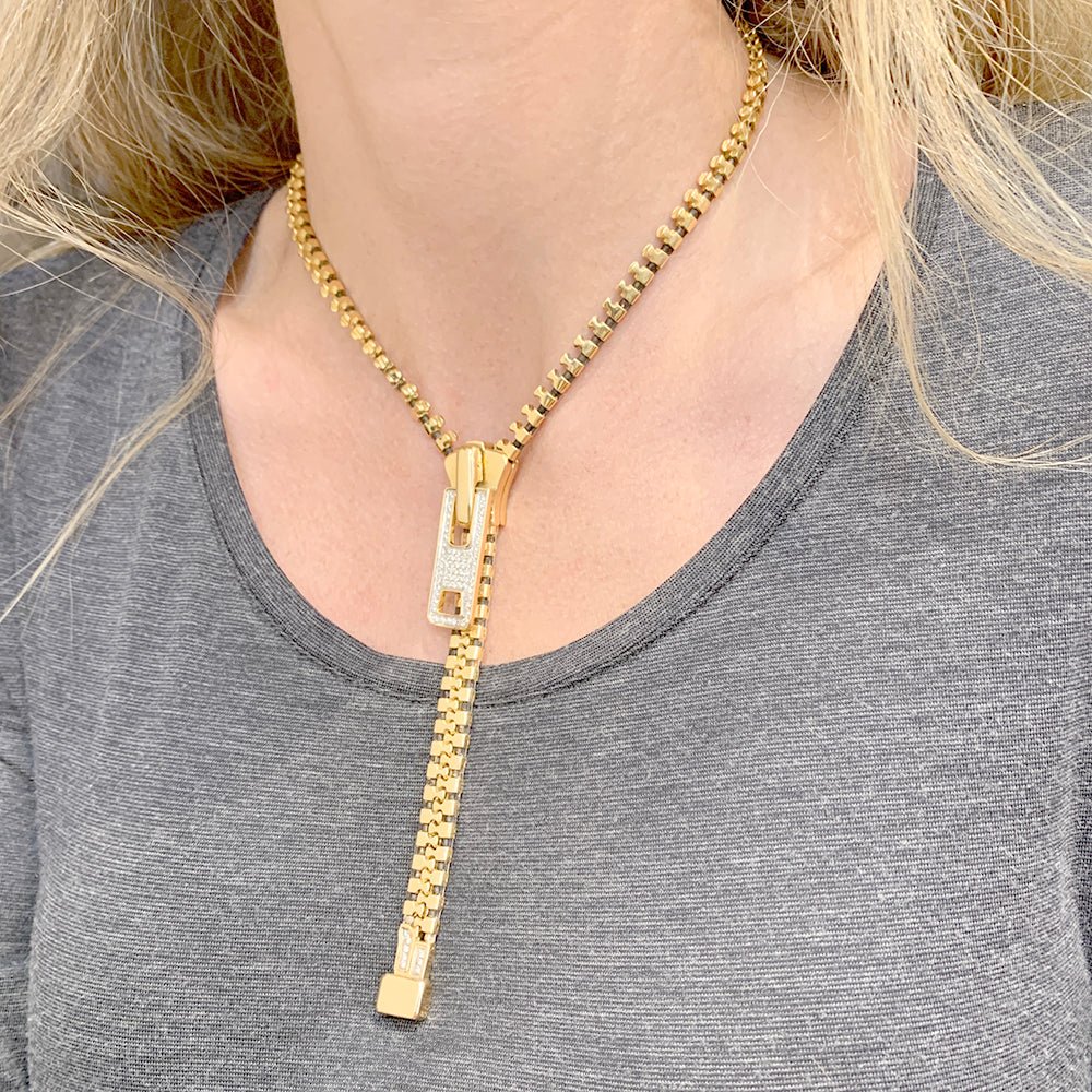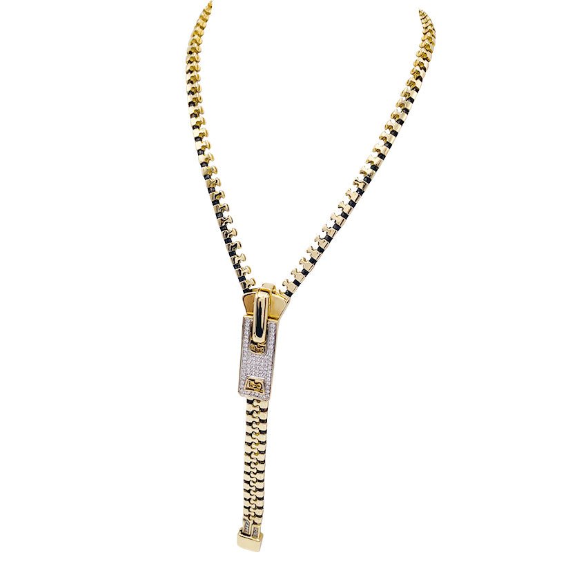 Un collier ZIP, vintage des années 1970 en or jaune et blanc 750/000 figurant une fermeture éclair ornée de 80 diamants taille brillant pour un poids total d'environ 1,60 carat. Longueur : 640 mm au total Poids : 103.8 grammes Poids du diamant : 1.60 carat
