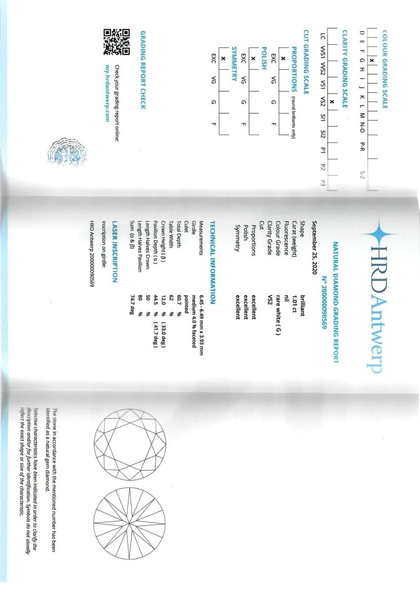 HRD Antwerp Certified 1 Carat Diamond Gold Engagement Ring (bague de fiançailles en or)