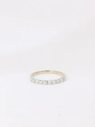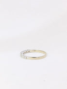 Demi-Alliance américaine en or blanc 18k (750°/°°) sertie de 9 diamants taille brillant pesant environ 0,04 ct chacun (FG VS) pour un poids total d'environ 0,36 ct. Un poli rhodiage sera effectué sur demande.Tour de doigt 50, mise à taille possiblePoids brut : 1,66 grammes