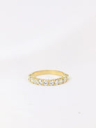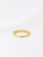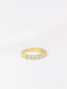 Demi-Alliance américaine en or jaune 18k (750°/°°) sertie de 10 diamants taille brillant pesant environ 0,10 ct chacun (FG VS) pour un poids total d'environ 1 ct. Travail français vintage. Tour de doigt : 49, mise à taille possiblePoids brut : 2,44 grammes