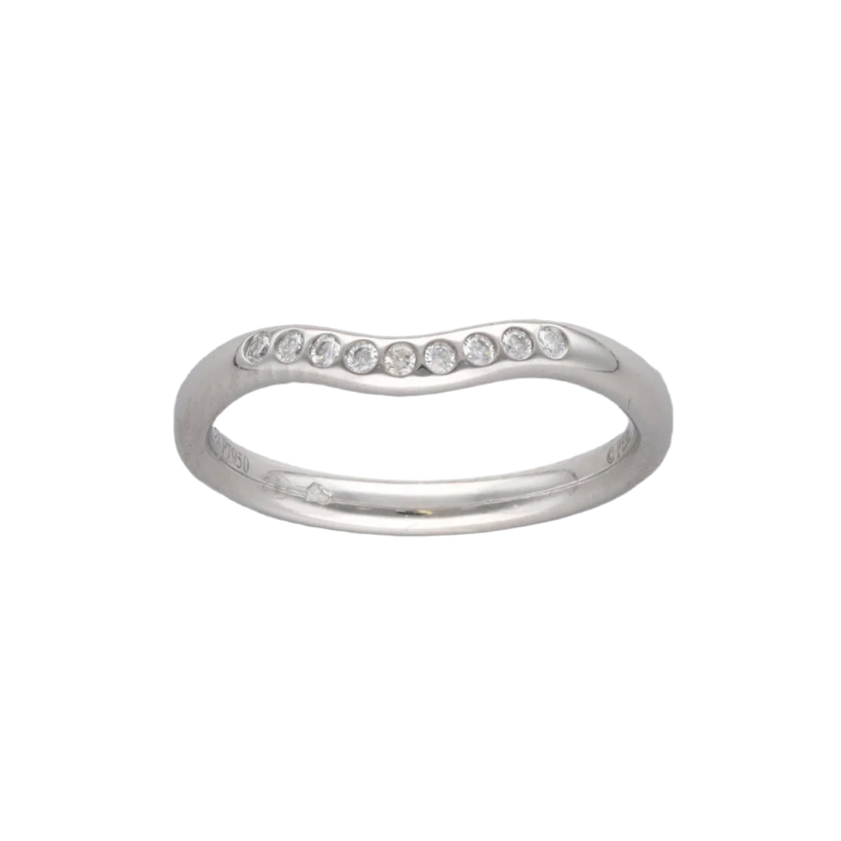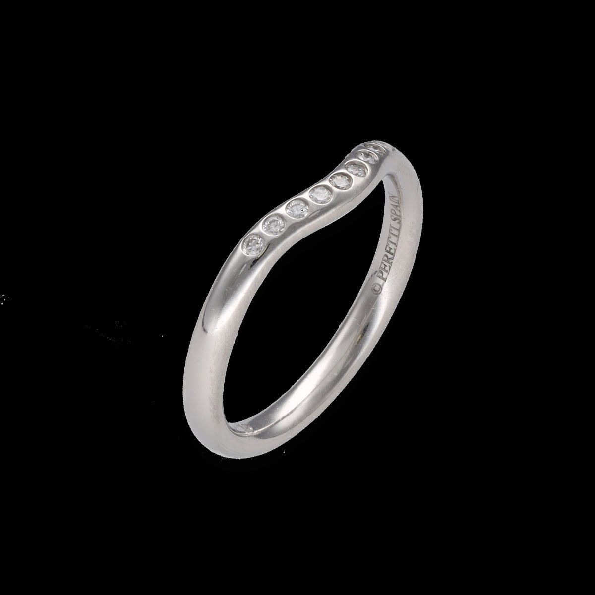 Demi alliance Tiffany & Co Olga Peretti en platine avec 0,06 carat de diamants brillants .F-VVS. Taille 49 avec possibilité de la mettre à taille. Facture d'origine.