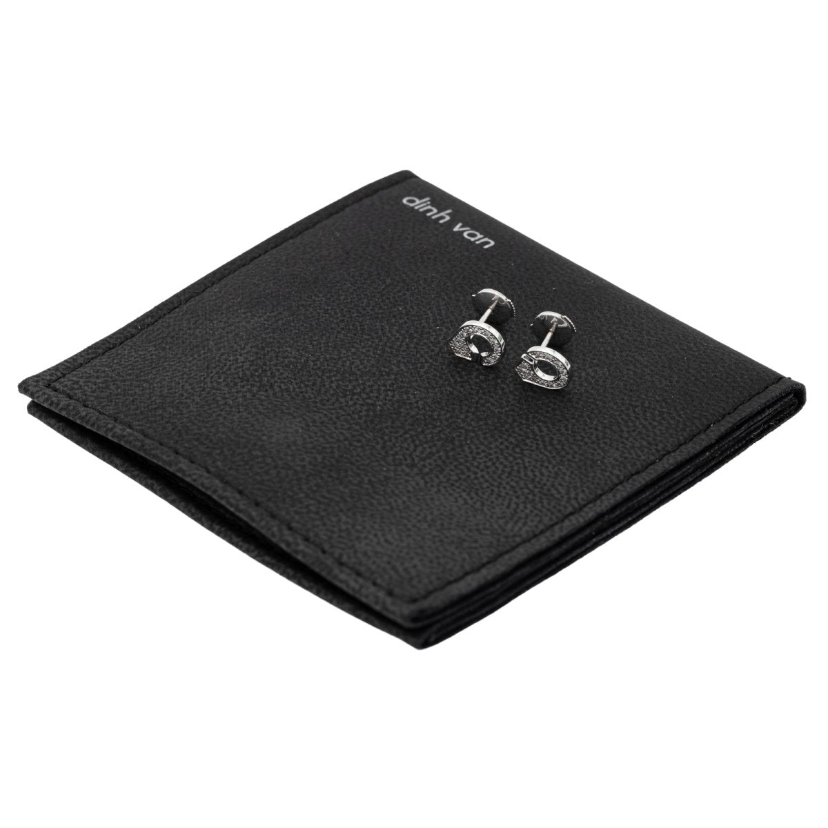 Boucles d'oreilles signées de la Maison Dinh Van. menottes R7.5 en or blanc 750 millièmes (18 carats). pavées de diamants. pour un total d'environ 0.11 ct. fermoir alpa. dimensions: 0.9 cm x 0.76 cm. poids total: 1.71 g. excellent état
