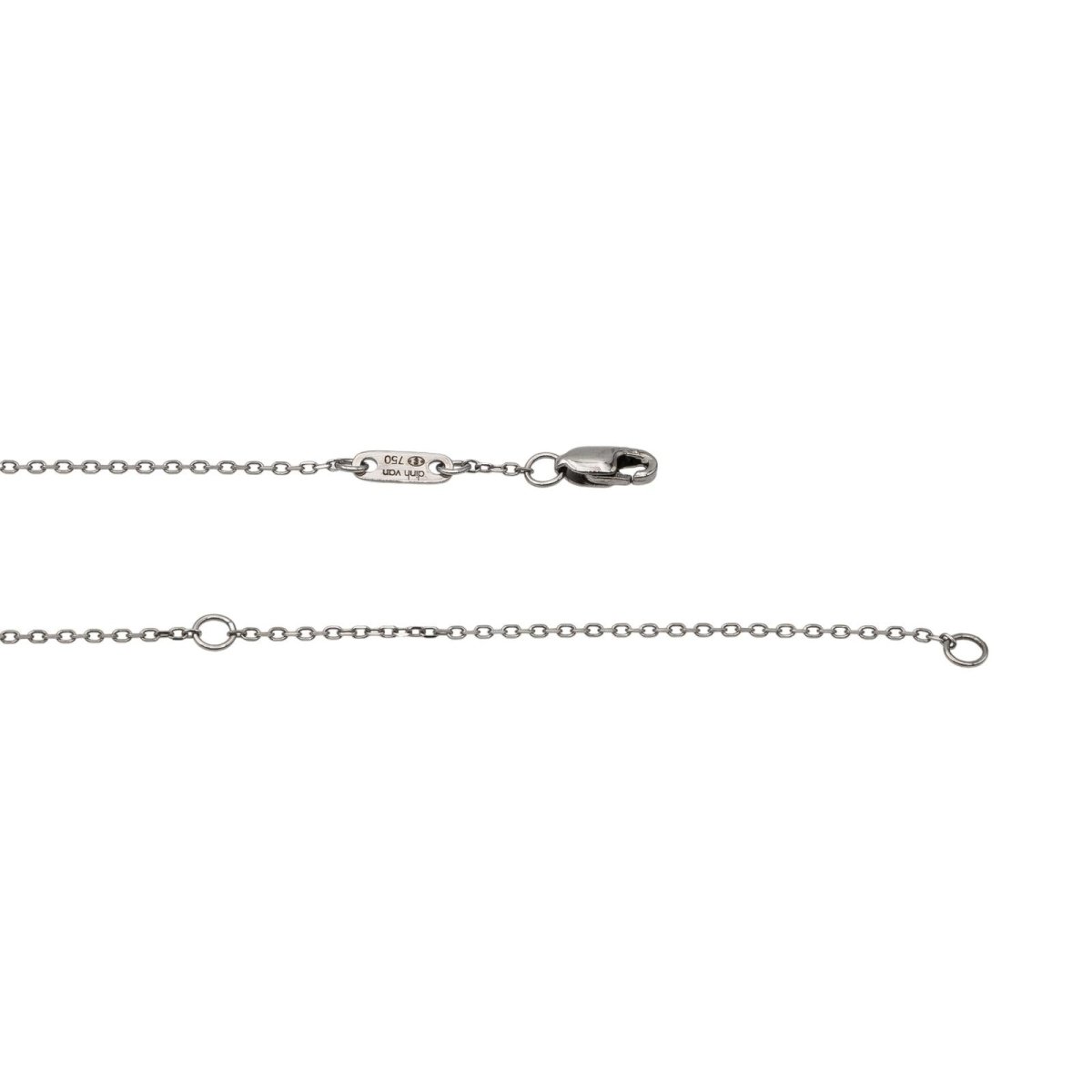 Collier signé de la Maison Dinh Van en or blanc 750 millièmes (18 carats). petit modèle Le Cube. serti d'un diamant environ 0.07 ct. dimensions du cube : 0.37 x 0.37 x 0.37 cm. Longueur: 45 cm (ajustable à 40 cm). Prix neuf: 940 €. vendu avec sa pochette. Poids total: 1.41 g. Excellent état