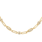 Sautoir signé de la Maison Fred en or jaune 750 millièmes (18 carats). serti de 264 diamants taille brillant. chacun d'environ 0.03 ct. poids total diamants: 7.92 cts. longueur: 72 cm. largeur: 0.84 cm. poids total: 76.40 g. signature partiellement éffacée. poinçon tête d’aigle. excellent état