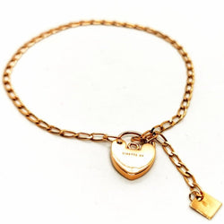 Bracelet signé de la maison Ginette NY. modèle Providence. en or rose 750 millièmes (18 carats). chaîne maille forçat. pendentif cadenas forme cœur. longueur: ajustable jusqu'à 21 cm. dimensions pendentif: 1.54 cm x 1.14 cm. largeur chaîne: 0.22 cm. poids total: 3.78 g. poinçon tête d'aigle. excellent état