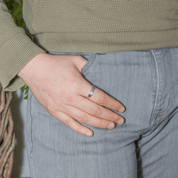 Alliance tour complet signée de la Maison Mauboussin en or blanc 750 millièmes (18 carats). modèle Ruban du bonheur mon amour. largeur sur le dessus : 0.45 cm. tour de doigt : 66. poids total : 5.08 g. poinçon tête d'aigle et poinçon maître. excellent état