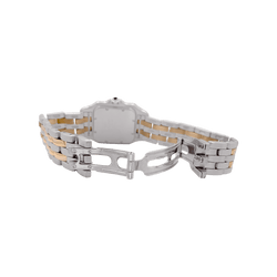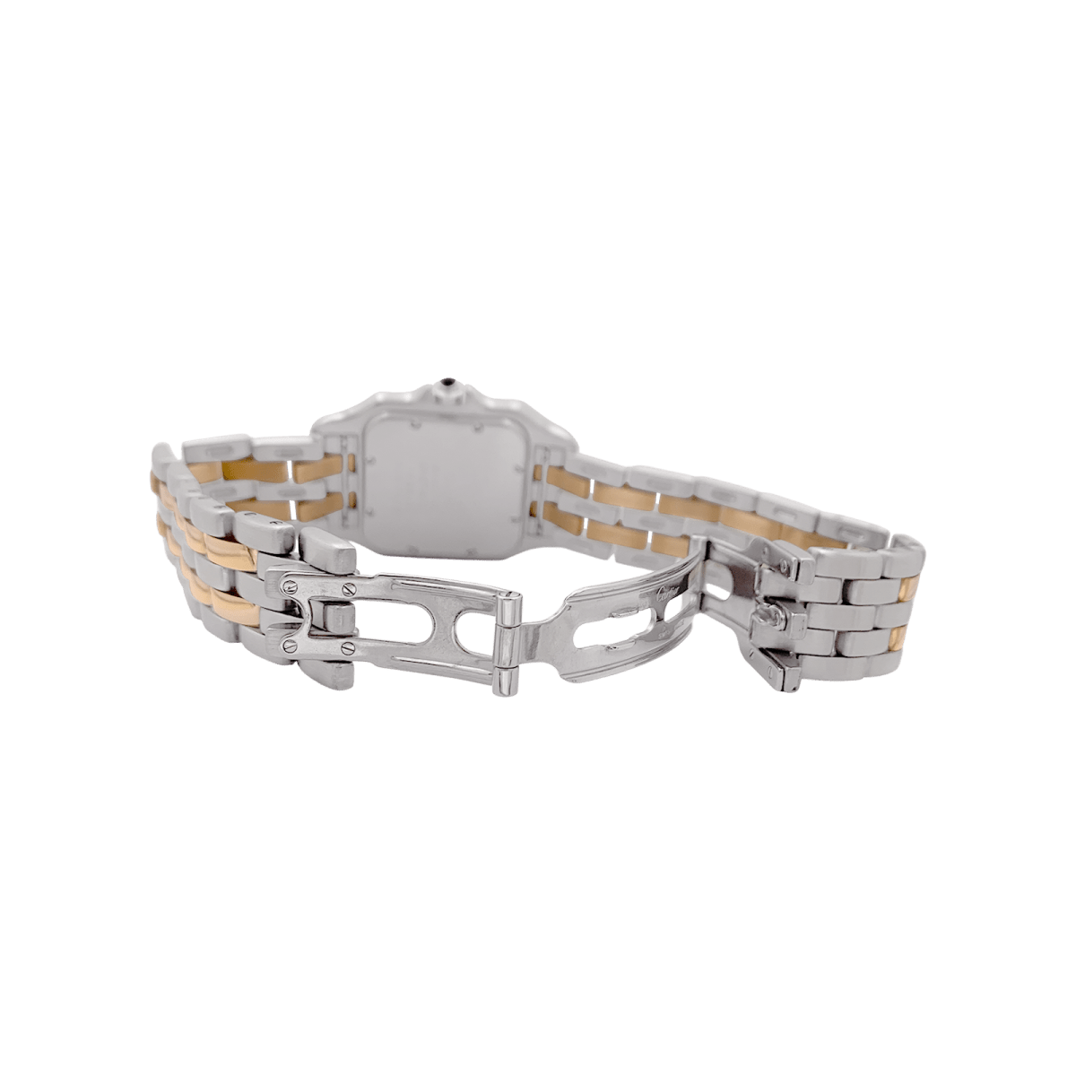 Montre Quartz CARTIER, modèle Panthère en or jaune 18 carats et acier sur bracelet 2 rangs d'or jaune 18 carats et acier avec double boucle déployante. Cadran crème, chiffres romains, minuterie chemin de fer, date à 5h.