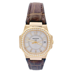 Montre PATEK PHILIPPE "Nautilus" en or rose, diamants et cuir