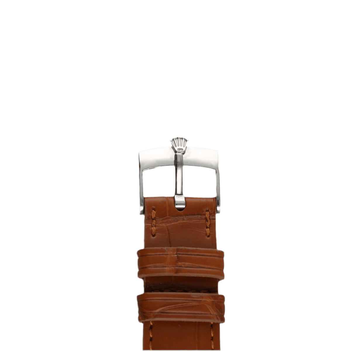 Montre Tudor Oyster Prince, boîtier en acier inoxydable, abritant un mouvement automatique calibre 390. Montée sur un bracelet en cuir de crocodile marron.