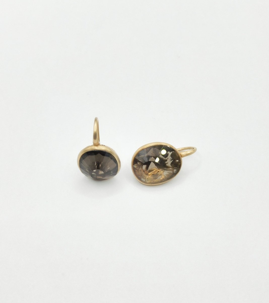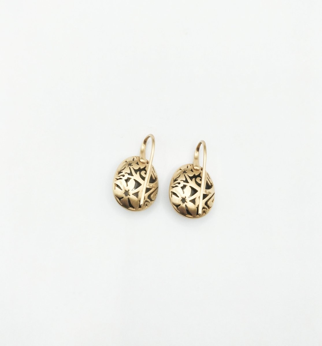 Très jolie paire de boucles d'oreilles POMELLATO , modèle "Arabesques" en or rose 18 carats et quartz. Très bon état. Avec son écrin. Poids total : 9,79 g Hauteur : 2 cm