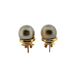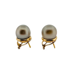 Paire de boucles d'oreilles en or jaune et perles de Tahiti