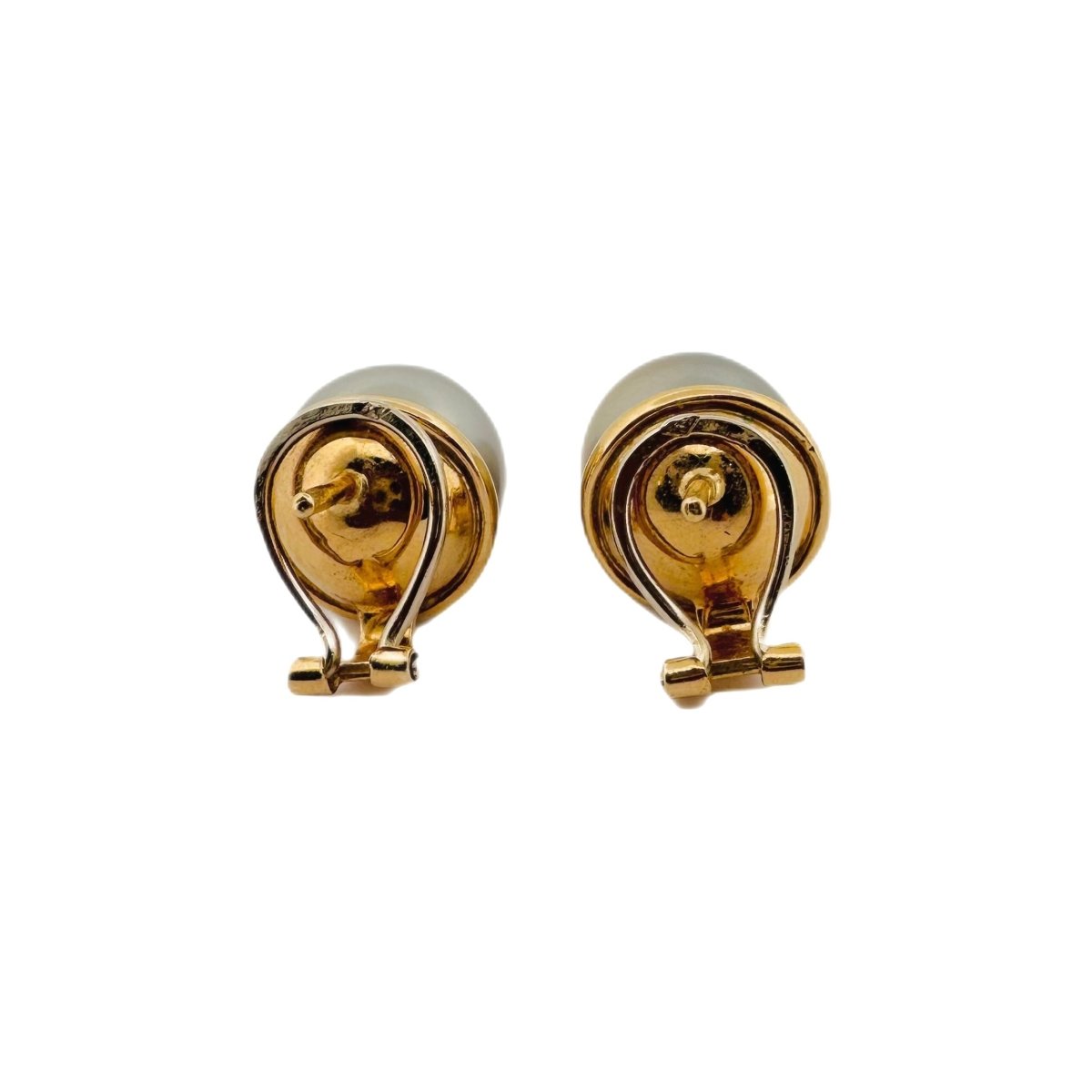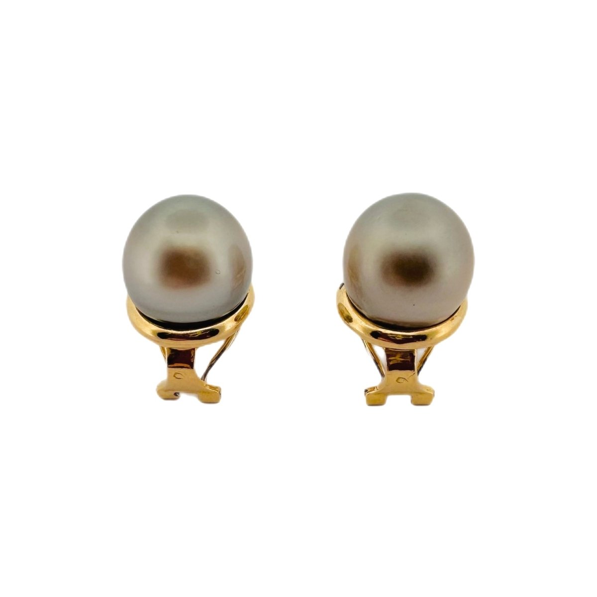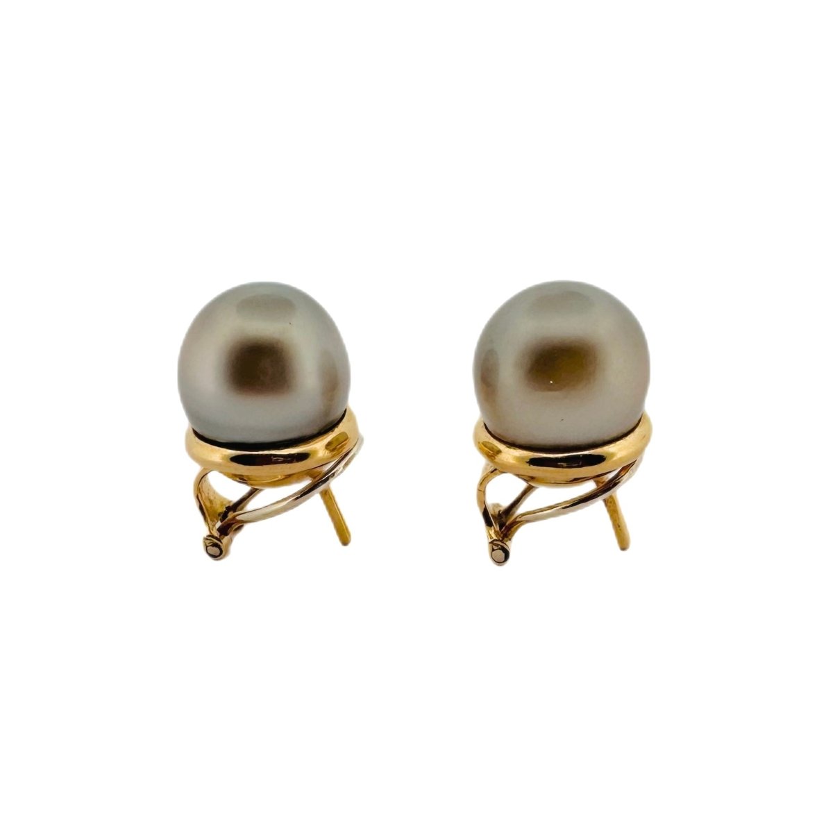 Boucles d'oreilles or jaune 18 carats et perles de Tahiti, attribuées à BULGARI. Système pour oreilles percées.