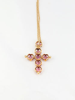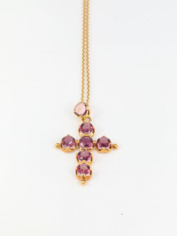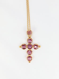 Pendentif croix ancien en or et grenats roses, fin XIXème