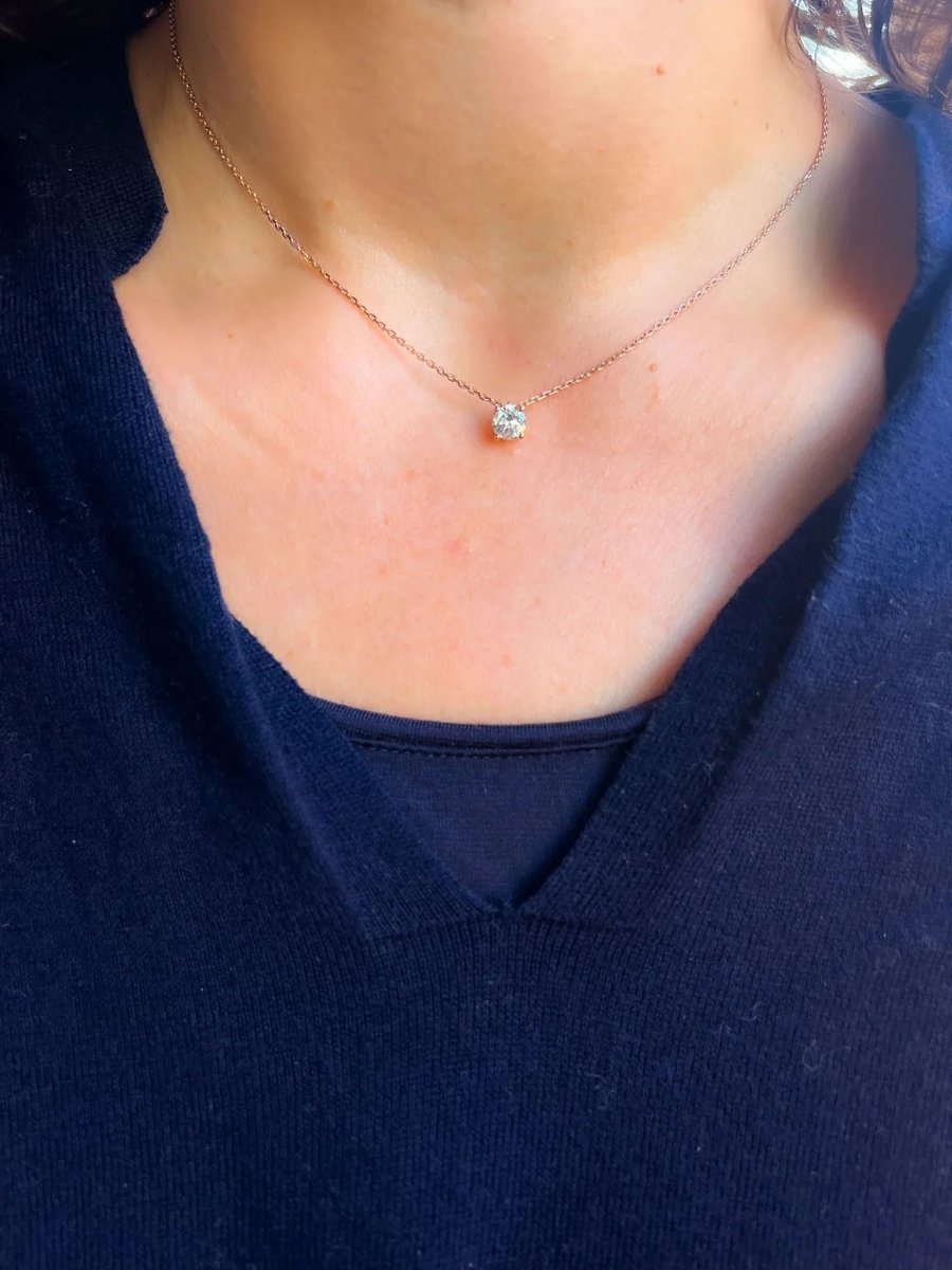 Pendentif orné d'un diamant taille ancienne or rose