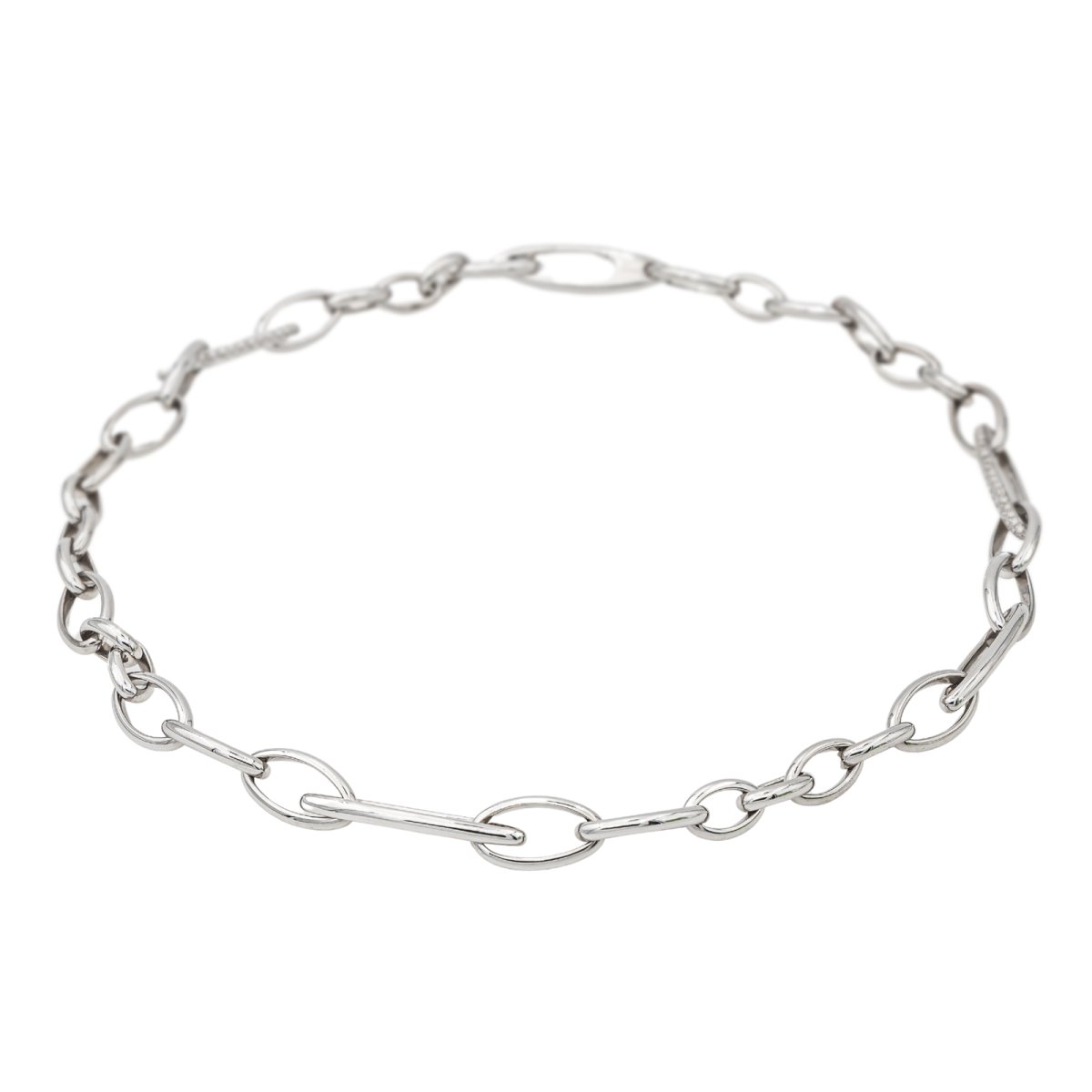 Collier signé de la Maison Pomellato en or blanc750 millièmes (18 carats). modèle Iconica. taille brillant. poids total diamants : environ 1.40 ct (chaque diamants d'un poids d'environ 0.01 ct). maille Iconica. longueur : 59 cm. largeur : 0.36 cm. poids total : 118.45 g. poinçon tête d’aigle. numéroté. excellent état