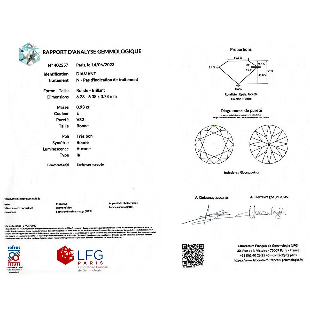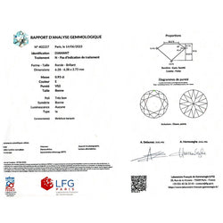 Une paire de puces d’oreilles en or jaune 750/000 sertie chacune d'un diamant taille brillant. Poids et qualité des diamants : 0,93 ct - E/VS2 et 0,99 ct - E/VS1. Certificats du Laboratoire Français de Gemmologie (LFG). Poid : 1,6 gramme Poid du diamand : 0,93 ct/0,99 ct