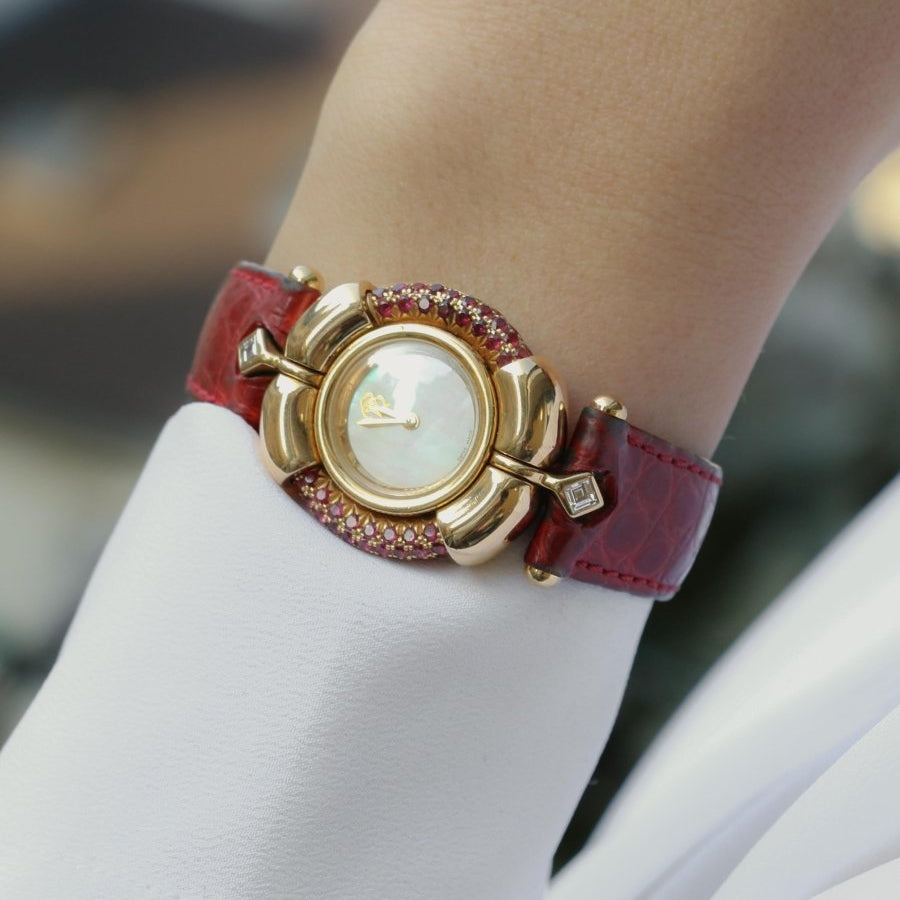 RENE BOIVIN Montre Chrysalide or jaune rubis saphirs diamants