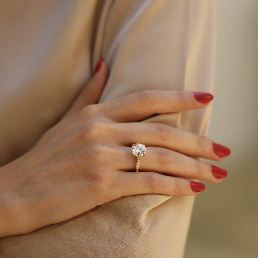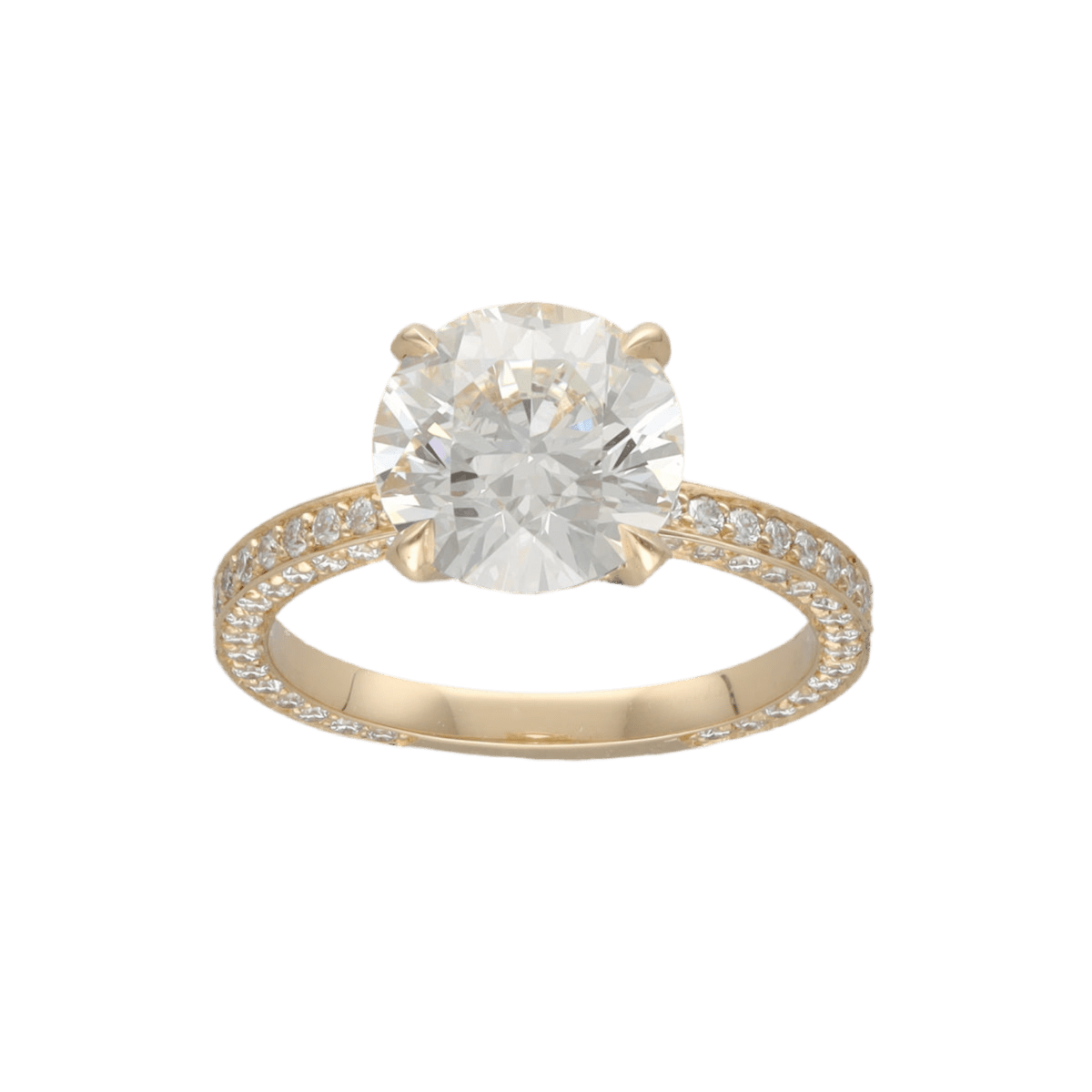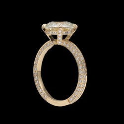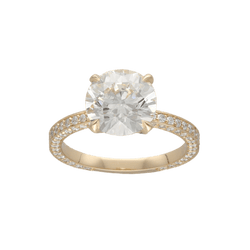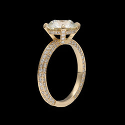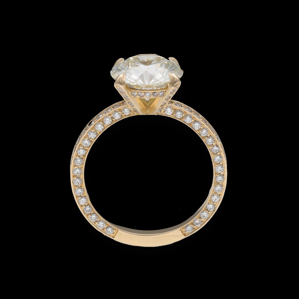 Bague solitaire en or jaune 18 carats, orné d’un diamant central taille brillant et accompagné d’un pavage de 140 diamants