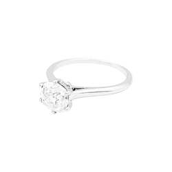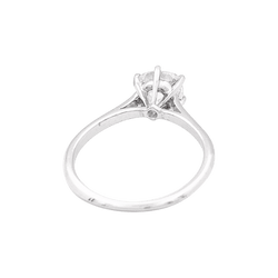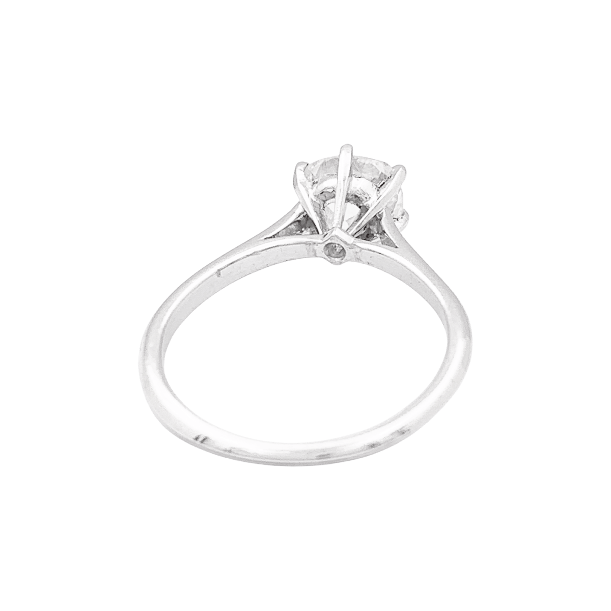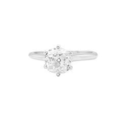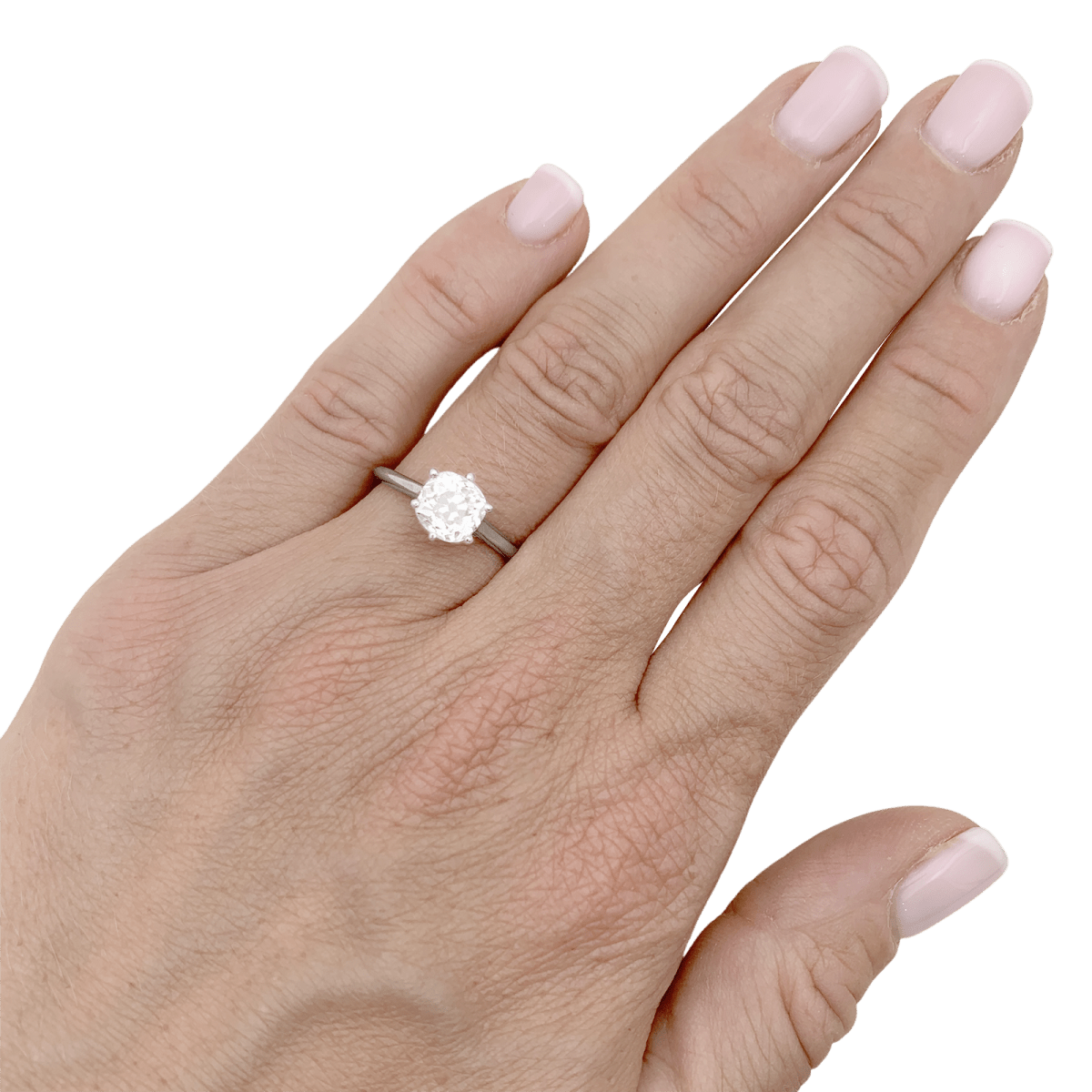 Bague Solitaire en or blanc 18 carats et platine et sertie d'un diamant coussin taille ancienne