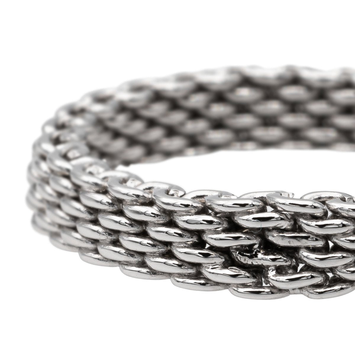 Bague signée de la Maison Tiffany & Co. en or blanc 750 millièmes (18 carats). largeur sur le dessus: 0.38 cm. tour de doigt: 55. poids total: 4.08 g. poinçon hibou. excellent état